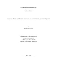 Cette thèse démontre dans un premier temps que des investissements qui augmentent la qualité et la quantité de l'éducation permettent de réduire les inégalités de revenu. Dans un second temps, que des investissements qui garantissent aux enfants d'aujourd'hui, une éducation et une santé complètes sont de nature à permettre aux PED de réduire significativement le taux de l'extrême pauvreté dans le futur.