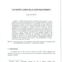 A travers l'analyse des leviers de la logistique durable et des programmes ambitieux menées par les entreprises sous l'impulsion des organismes internationaux, le présent document montre comment la logistique constitue un facteur-clé pour relever les défis du développement durable en complément des solutions d'éco-conception, d'éco-industrialisation et d'éco-production utilisées dans l'industrie.